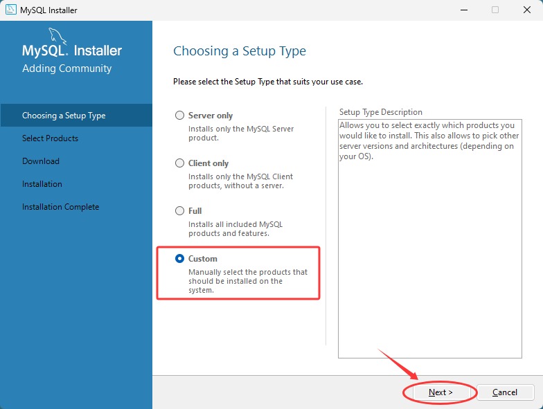 这里以 8.0.41.0 版本为例(其他版本的安装过程是类似的),下载 MySQL 安装包(.msi),双击开始安装。