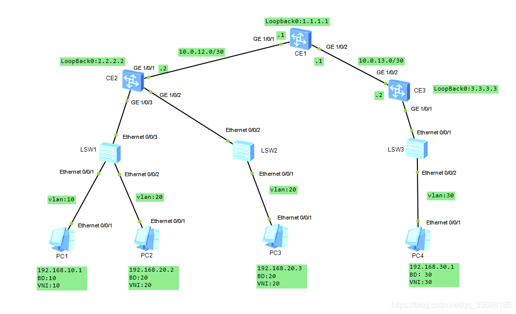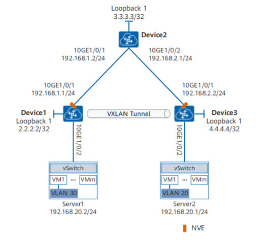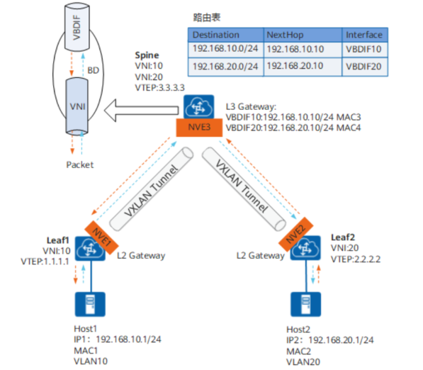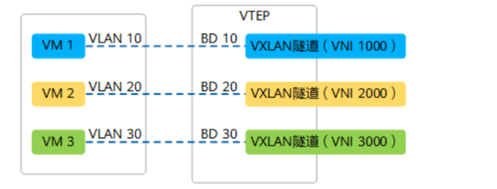 NVI:Vxlan隧道端点 负责接入BD 运行在Vtep内 采用不同ID区分