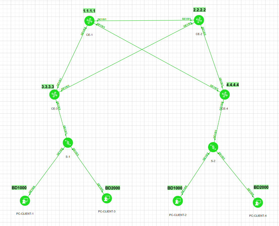 SW1\] bridge-domain 100 #创建BD \[SW1-bd100\]vxlan vni 1000 #BD绑定VNI \[SW1\] int nve 1 #有且只有一个 \[SW1-nve1\]source 1.1.1.1 #配置源IP用于Vtep寻址 \[SW1-nve1\]vni 1000 head-end peer-list 2.2.2.2 #VNI 1000 去找 NVE 2.2.2.2有同样的NVI 1000 隧道建立成功 ### 三层网关的两种部署方式: 二层网关:用于解决租户接入Vxlan虚拟网络中或同网段通信 三层网关:跨网段通信以及外部网络访问 #### 集中式网关: 所有三层通信都要经过Spine进行转发实现集中式管理 优点:流量集中管理,配置较为简单 缺点:转发路径不是最优路径,Spine压力过大以及ARP表项瓶颈 #### 分布式网关:  Spine节点:关注于高速IP转发,强调的是设备的高速转发能力。 Leaf节点: 作为VXLAN网络中的二层网关设备,与物理服务器或VM对接,用于解决终端租户接入VXLAN虚拟网络的问题。 作为VXLAN网络中的三层网关设备,进行VXLAN报文封装/解封装,实现跨子网的终端租户通信,以及外部网络的访问。 **分布式网关的特点** VXLAN分布式网关具有如下特点: 同一个Leaf节点既可以做VXLAN二层网关,也可以做VXLAN三层网关,部署灵活。 Leaf节点只需要学习自身连接服务器的ARP表项,而不必像集中三层网关一样,需要学习所有服务器的ARP表项,解决了集中式三层网关带来的ARP表项瓶颈问题,网络规模扩展能力强。 ### EVPN: EVPN通过扩展BGP协议新定义了几种BGP EVPN路由,这些BGP EVPN路由可以用于传递VTEP地址和主机信息,因此EVPN应用于VXLAN网络中,可以把原本依赖数据平面的VTEP发现和主机信息学习从数据平面转移到控制平面。 Type路由:  总结: Type 3:告诉别人"我在这个 VNI 里",用于建立 VNI 的泛洪树(IMET 表)。 Type 2:告诉别人"这个主机(MAC/IP)在我这里",用于学习主机位置与 ARP 抑制。 Type 5:告诉别人"这个三层网段(Prefix)从我这里可达",用于 VXLAN L3 路由。 ### 实验一:静态Vxlan集中网关转发  配置思路: 1. Leaf接入BD,Spine上存在BD 10 20 2. Leaf都指向Spine建立对等体 3. Int vbdif 配置IP 暂时无法在飞书文档外展示此内容 命令参考: https://blog.csdn.net/qq_35686185/article/details/112176735 存在疑问: 为什么只有终端可以ping通VBDIF 终端以上都不可以 目前理解:ce2 lsw1 没有IP 并且 ce 1 ce 2 通过BD ce 2 lsw 1 通过 vlan 组成局域网 Ce 2 lsw 1 就相当于一根网线 ### 实验二:Vxlan\&EVPN集中网关转发  配置思路: * ospf打通3层 * D1 D3 创建BD并接入下层VLAN * 通过NVE 建立隧道两端,并配置EVPN vrf * 通过BGP 打通隧道,D2创建Vbdif接入下层BD * 底层Vswitch,上trunk 下 access 终端配置vbdif 网关 注意: * 配置EVPN BGP前要线开启 **evpn-overlay enable** * 不要忘记配置EVPN VRF \[\~Device1\] **bridge-domain 20** \[\*Device1-bd20\] **evpn** * 使用路由反射器记得在EVPN实例中配置 \[\~ce1-bgp\]**l2vpn-family evpn** \[\~ce1-bgp-af-evpn\]**peer 2.2.2.2 reflect-client** \[\*Device2-bgp-af-evpn\] **undo policy vpn-target #反射器禁用标签** 具体配置命令查看手册 : 配置通过VXLAN实现相同网段用户通信的示例(BGP EVPN方式) 暂时无法在飞书文档外展示此内容 ### 实验三:分布式网关EVPN方式实现  #### 配置思路: Under-lay使用ospf打通 over-lay使用Bgp evpn Spine跟leaf建立bgp邻居并开启路由反射器 Leaf创建路由实例进行over-lay隔离,NVE接入vni 创建BD接入Vni 接入Vlan 接入evpn实例 leaf创建Vbdif 绑定路由实例 赋予ip mac 开启ip复用以及arp信息收集 #### 关键代码: **peer advertise irb :让对端学习到三层路由(原本只能学习二层)** **undo policy vpn-target :路由反射器一定要关掉这条命令,不然别人收不到** **evpn-overlay enable :所有三层设备都要开** **vxlan anycast-gateway enable :允许同IP同MAC在网络中同时存在,并由最近的路由进行响应** **arp collect host enable :** **收集BD下的设备信息通过EVPN发送给对端减少泛洪** VNI 3000 用来三层通信 配置: SPINE: under-lay基础配置: interface GE1/0/1 undo portswitch ip address 10.1.12.1 255.255.255.0 interface GE1/0/2 undo portswitch ip address 10.1.13.1 255.255.255.0 interface GE1/0/3 undo portswitch ip address 10.1.14.1 255.255.255.0 interface LoopBack0 ip address 1.1.1.1 255.255.255.255 Evpn-overlay enable bgp 1 private-4-byte-as enable peer 3.3.3.3 as-number 1 peer 3.3.3.3 connect-interface LoopBack0 peer 4.4.4.4 as-number 1 peer 4.4.4.4 connect-interface LoopBack0 ipv4-family unicast peer 3.3.3.3 enable peer 4.4.4.4 enable l2vpn-family evpn undo policy vpn-target peer 3.3.3.3 enable peer 3.3.3.3 advertise irb #路由反射器也要配 peer 3.3.3.3 reflect-client peer 4.4.4.4 enable peer 4.4.4.4 advertise irb peer 4.4.4.4 reflect-client ospf 1 area 0.0.0.0 network 1.1.1.1 0.0.0.0 network 10.1.0.0 0.0.255.255 Leaf1: evpn-overlay enable 三层实例,同租户使用相同实例 ip vpn-instance abc ipv4-family route-distinguisher 1:1 vpn-target 11:1 export-extcommunity evpn #一定要加上 vpn-target 11:1 import-extcommunity evpn #不然不走evpn vxlan vni 3000 #三层隧道 BD接入NVI 并 创建EVPN实例 bridge-domain 1000 vxlan vni 5010 evpn route-distinguisher 5010:1 vpn-target 5010:1 export-extcommunity vpn-target 11:1 export-extcommunity #只出不入二层与三层隔离 vpn-target 5010:1 import-extcommunity bridge-domain 2000 vxlan vni 5020 evpn route-distinguisher 5020:1 vpn-target 5020:1 export-extcommunity vpn-target 11:1 export-extcommunity vpn-target 5020:1 import-extcommunity 创建vbdif 绑定三层实例配置两条核心命令 interface Vbdif1000 ip binding vpn-instance abc ip address 192.168.1.254 255.255.255.0 mac-address 0000-5e00-0101 vxlan anycast-gateway enable arp collect host enable interface Vbdif2000 ip binding vpn-instance abc ip address 192.168.2.254 255.255.255.0 mac-address 0000-5e00-0102 