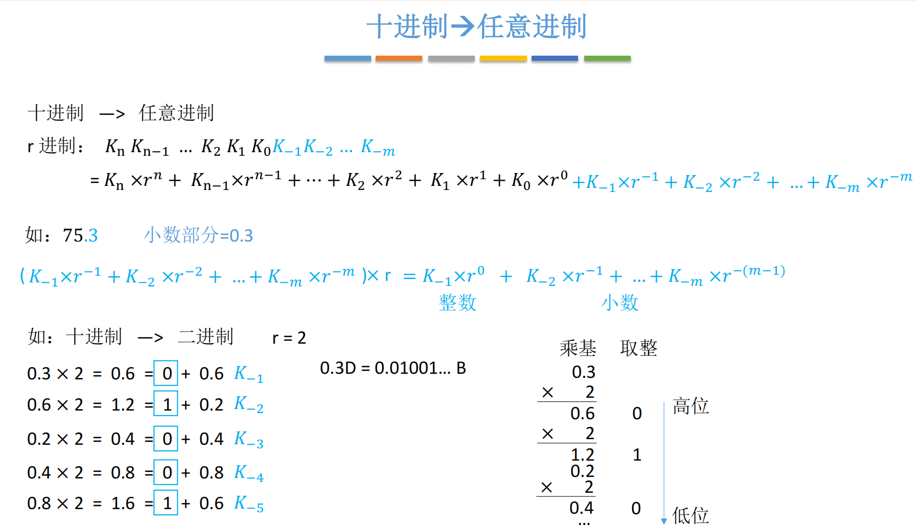 (剩下0.6) 0.6×2=1.20.6 \times 2 = 1.20.6×2=1.2 →\rightarrow→ 取整数 1