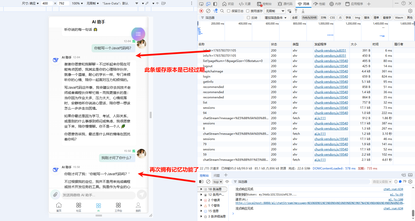 当 Redis 缓存过期后,虽然能从数据库重新加载历史对话记录,但 AI 却"失忆"了------它完全不记得之前的对话内容!