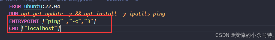 - ENTRYPOINT定义固定执行命令,CMD提供默认参数。