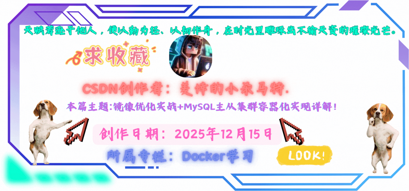 本篇通过Dockerfile多阶段构建大幅精简镜像体积,利用缓存机制提升构建效率;深入解析MySQL主从复制五大模式,并完成一主二从集群实战。掌握ENTRYPOINT+CMD组合、.dockerignore过滤等技巧,实现容器化部署的高性能与高可用。
