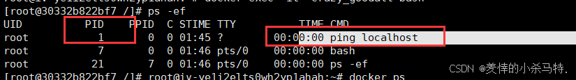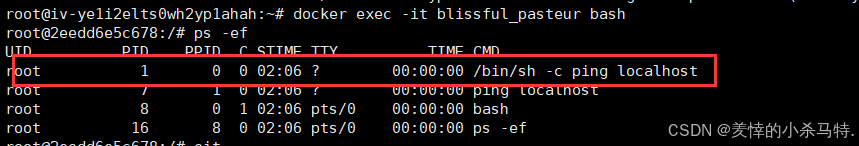 - shell模式发现启动后容器主进程不是对应指令而是bin/sh----->shell。