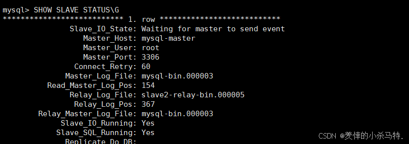 这里对应的master的密码用户都是root;然后在两个从的初始化sql中都设置了用户名和密码都是root。