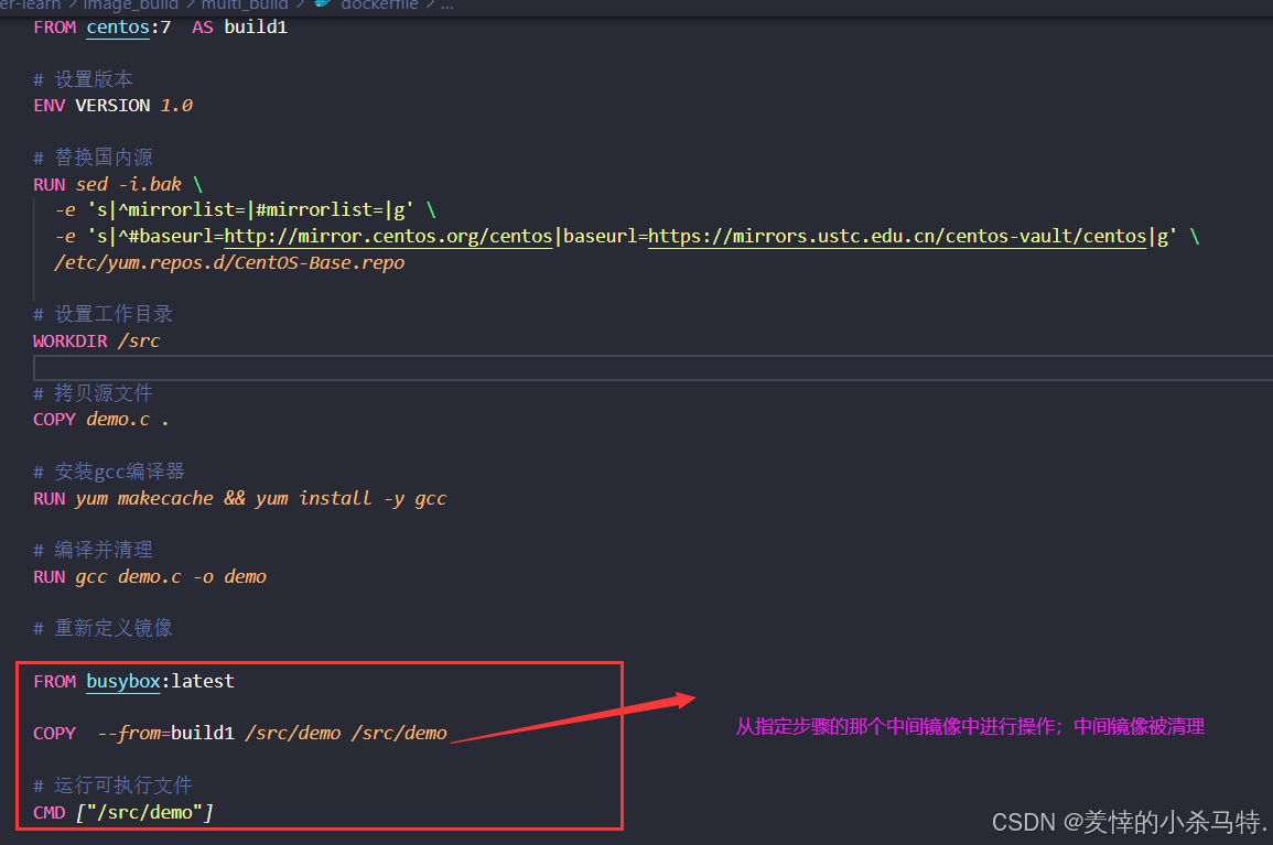 - Dockerfile中后写的指令会覆盖同类型的前置指令。