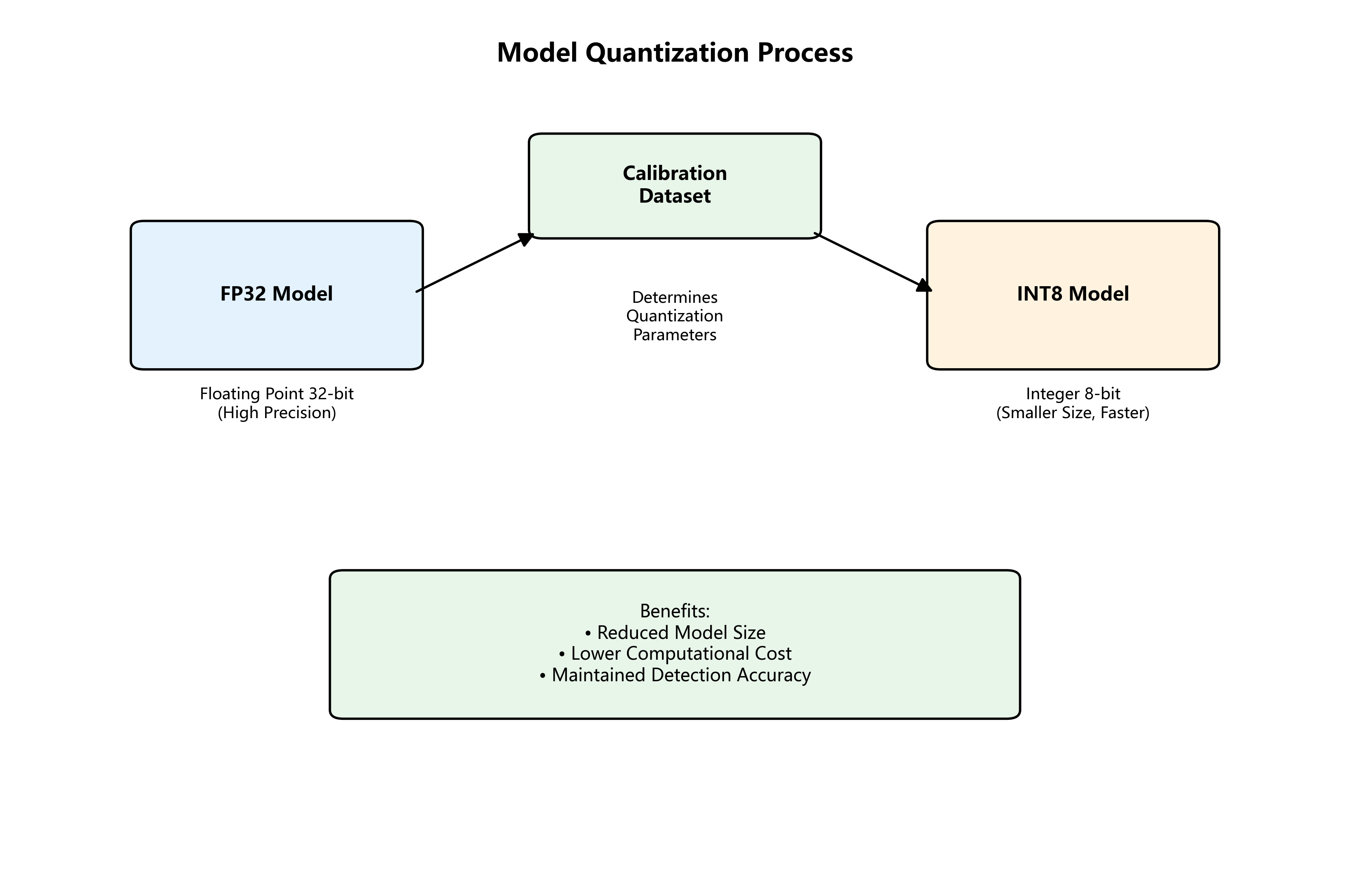 - 量化: 将FP32模型转换为INT8量化模型,减少计算量和内存占用