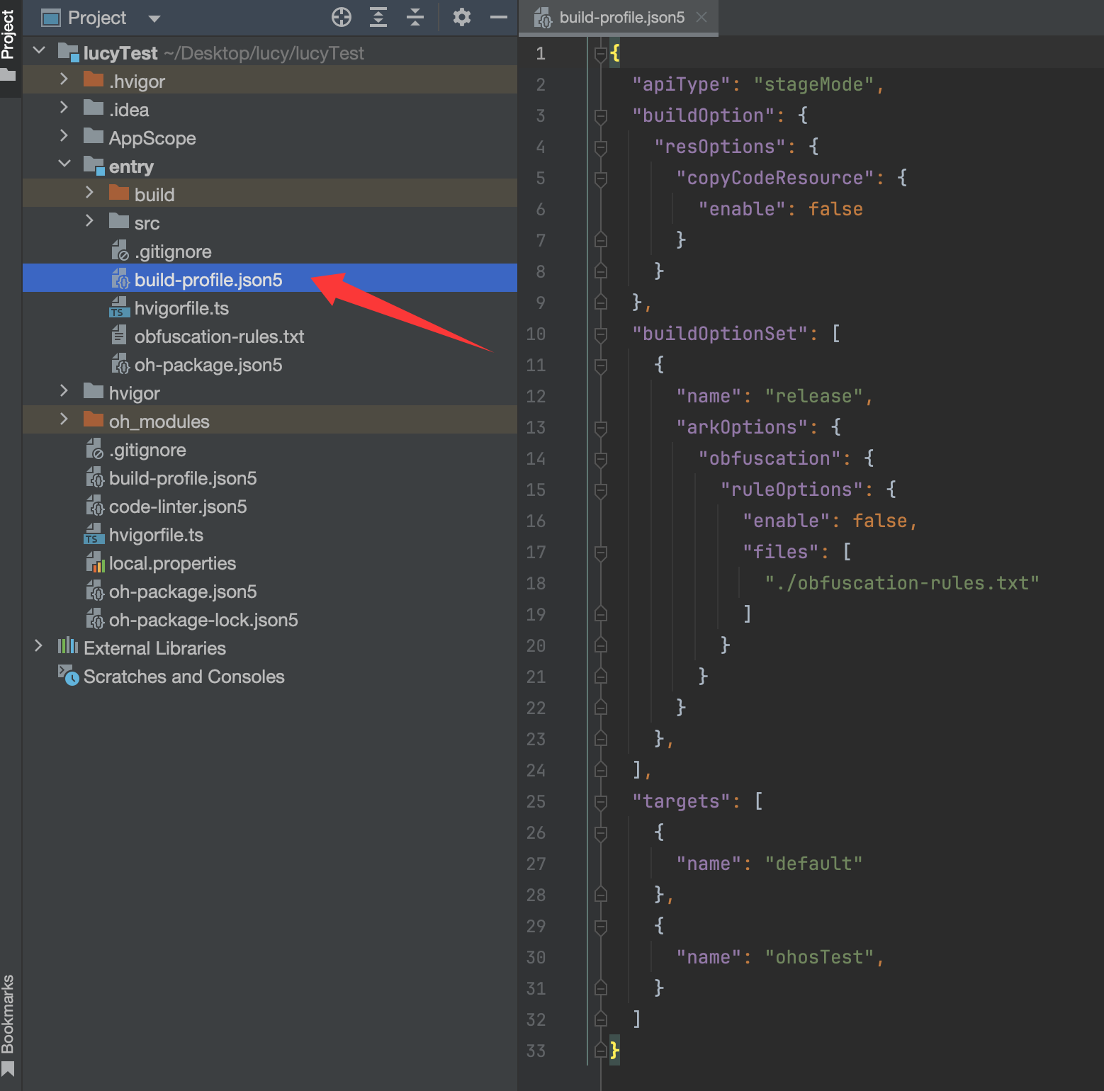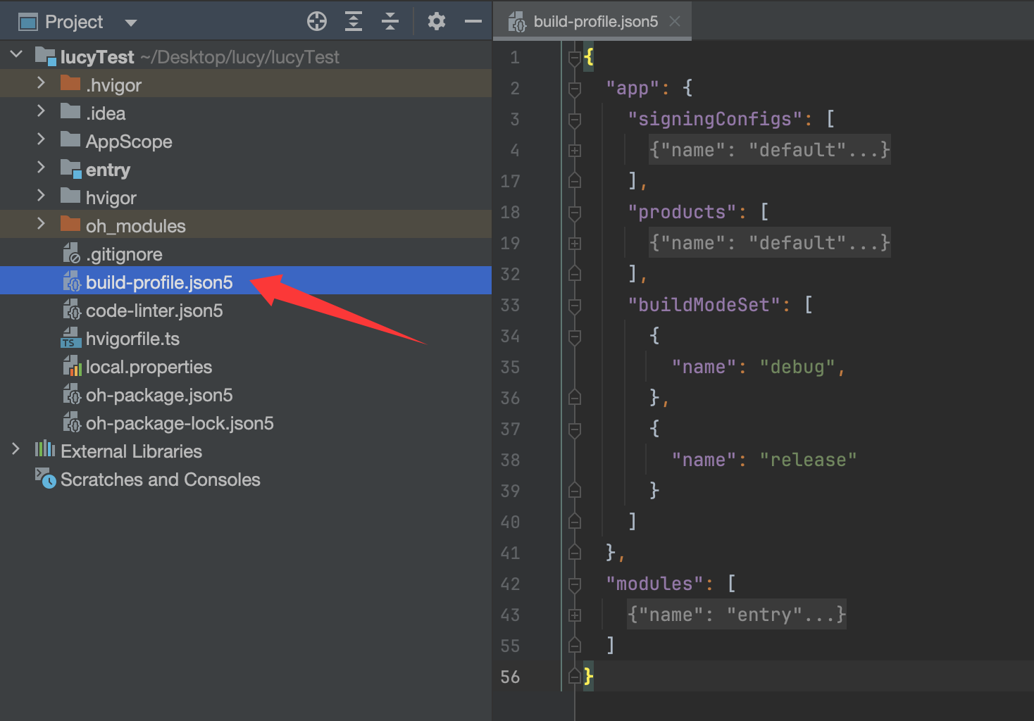 如entry/feature模块目录的build-profile.json5文件,属于模块个性化配置
