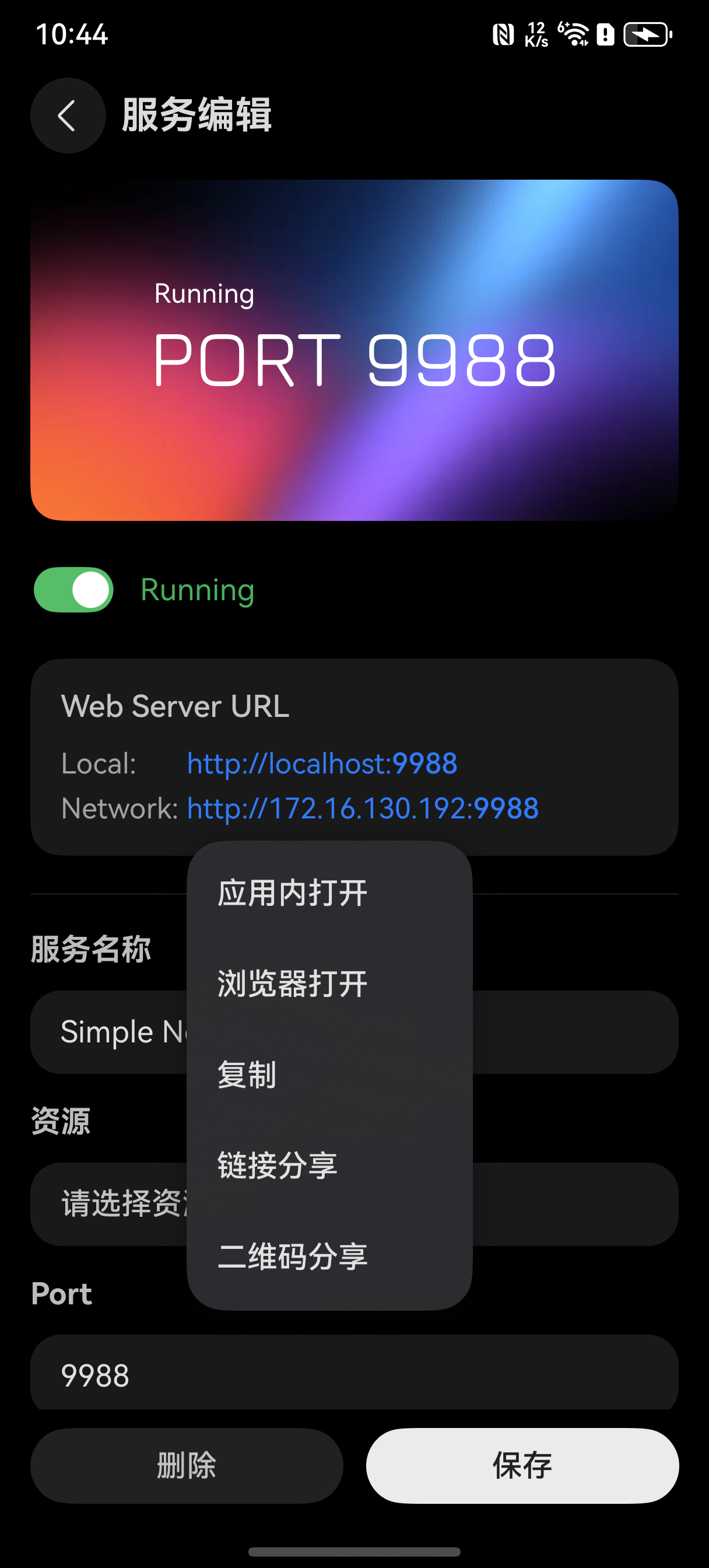 你只需要把资源放进应用,启动服务,其他设备用浏览器访问即可。