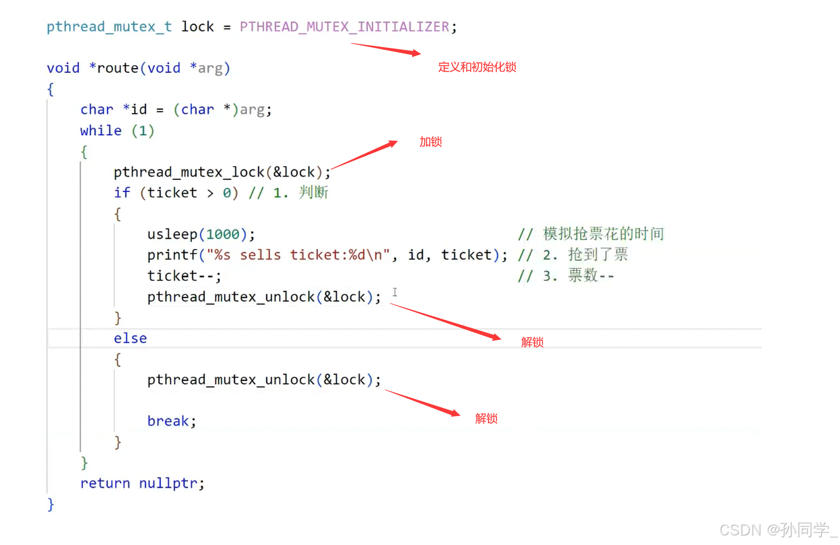 1.定义全局的锁 :用pthread_mutex_t mutex= PTHREAD MUTEX INITIALIZER;初始化