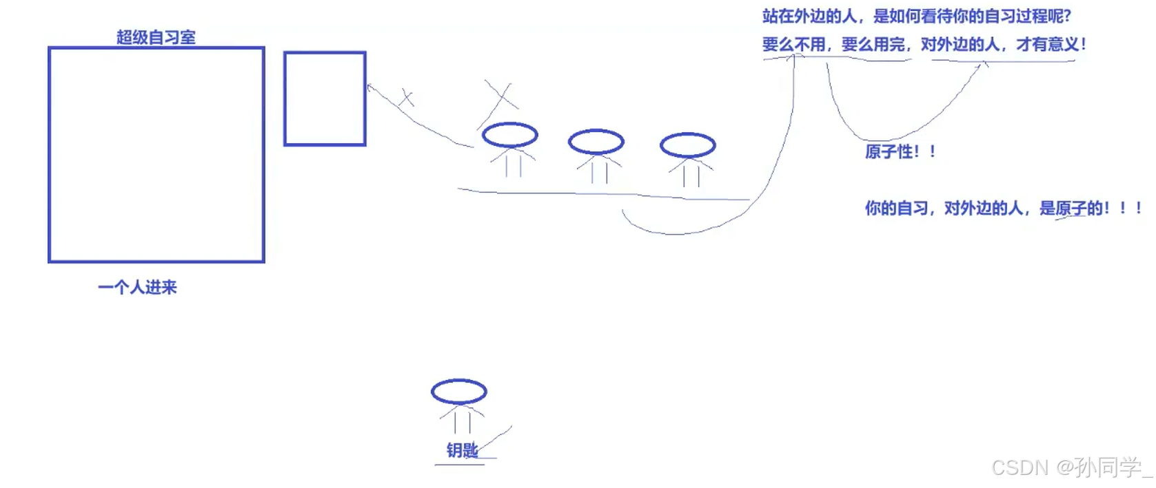 - 互斥: 任何时刻,互斥保证有且只有一个执行流进入临界区,访问临界资源,通常对临界资源起保护作用