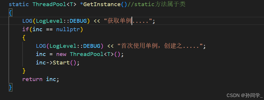 static ThreadPool<T> *GetInstance() // static方法属于类