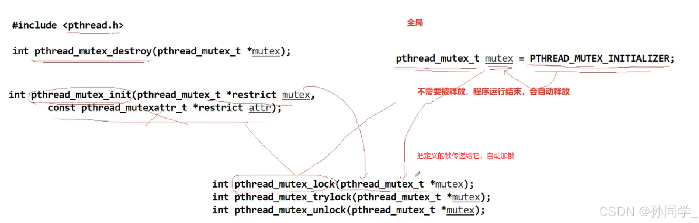 2.定义局部的锁:用int pthread_mutex_init初始化,用int pthread_mutex _destroy(pthread mutext *mutex); 来释放。