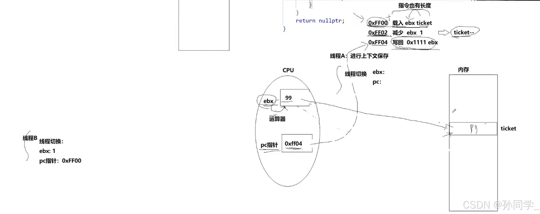 cpu为什么要对ticket做计算,为什么又要写回内存,本质是cpu正在执行一个进程或者线程的代码