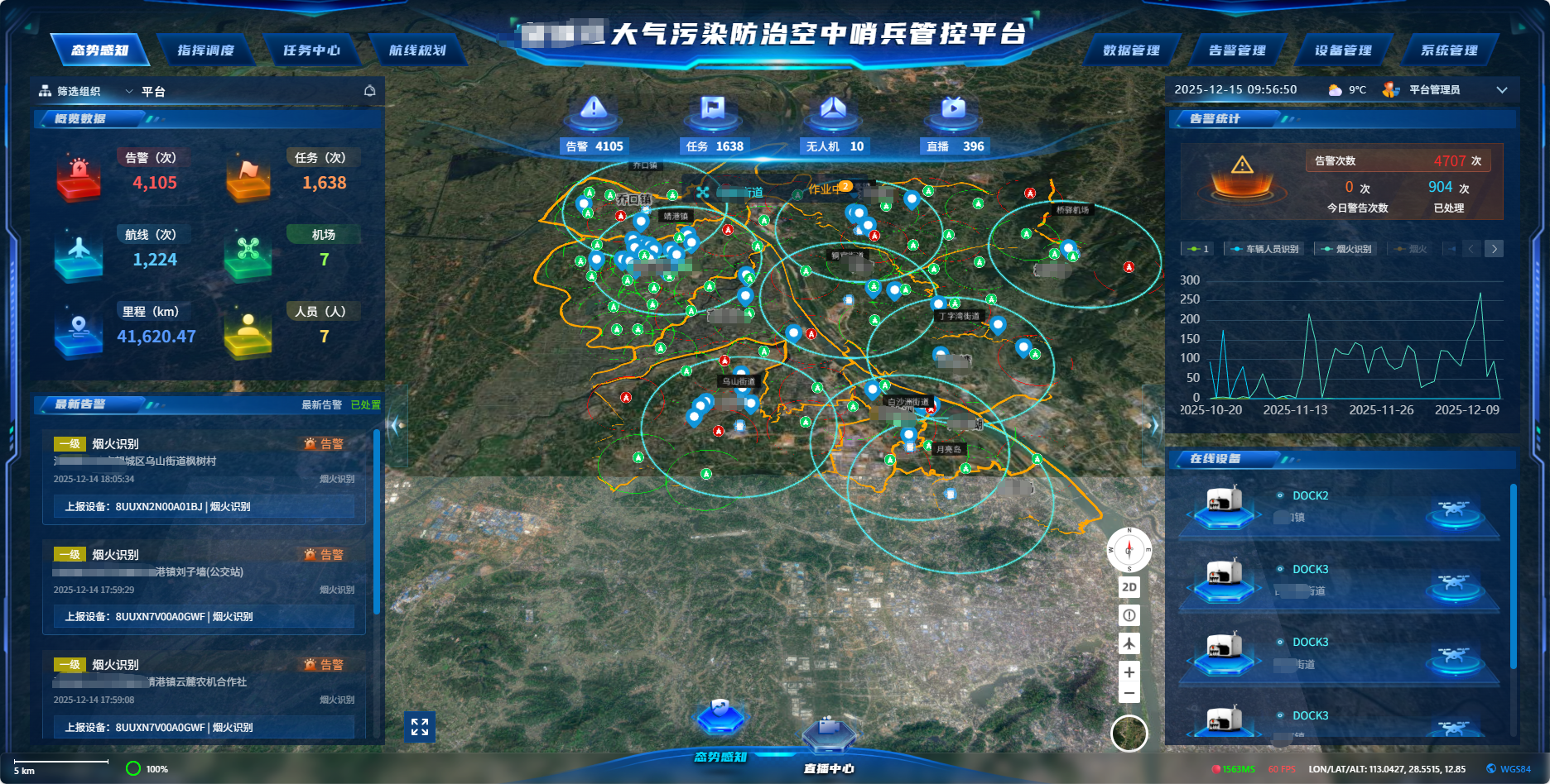 可源码交付:县域低空无人机巡检平台,一键起飞、航线规划、事件上报、警用反无
