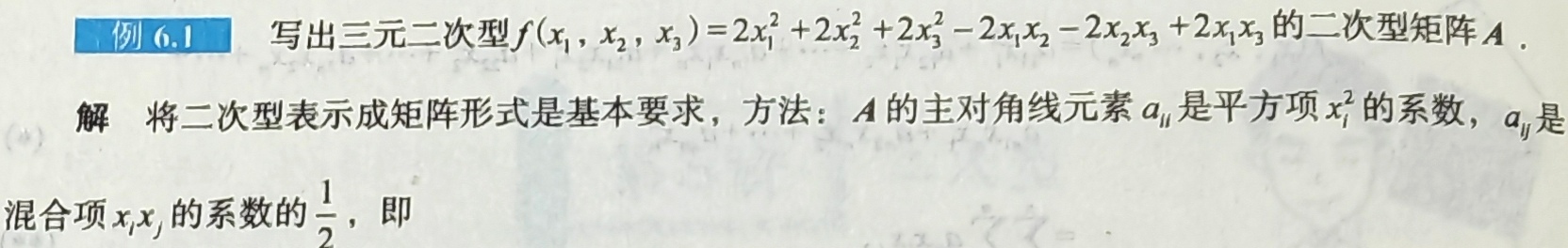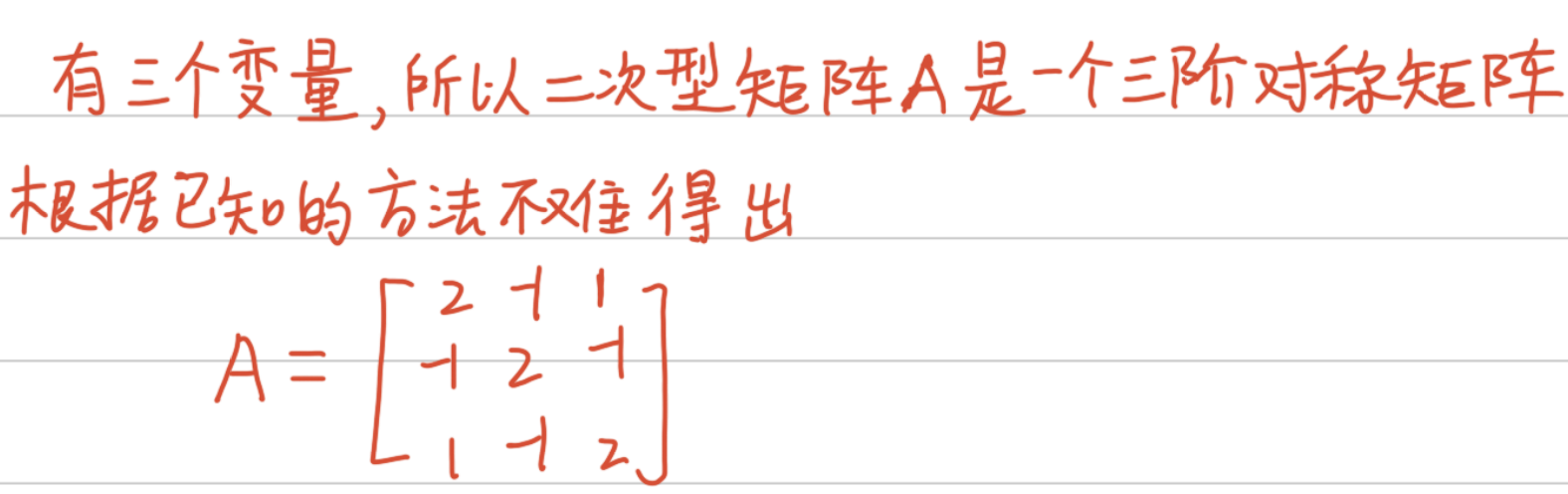 二次型的矩阵A是一个对称矩阵,满足 A T = A A^T=A AT=A