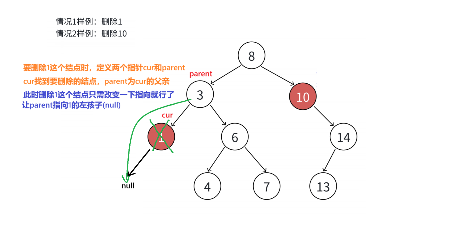 //凡是要托付给父亲的结点(被删除的结点) 就要判断当前结点是父亲的左孩子还是右孩子