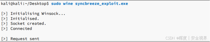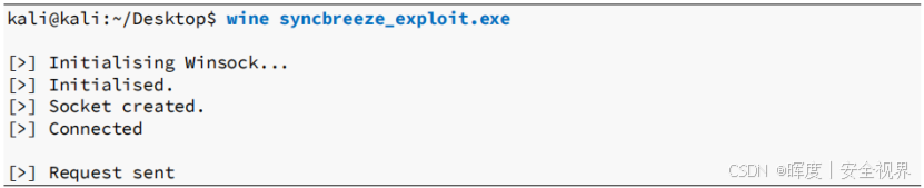 | ② 启动攻击 | 在另一个终端使用Wine运行漏洞利用 | wine syncbreeze_exploit.exe |