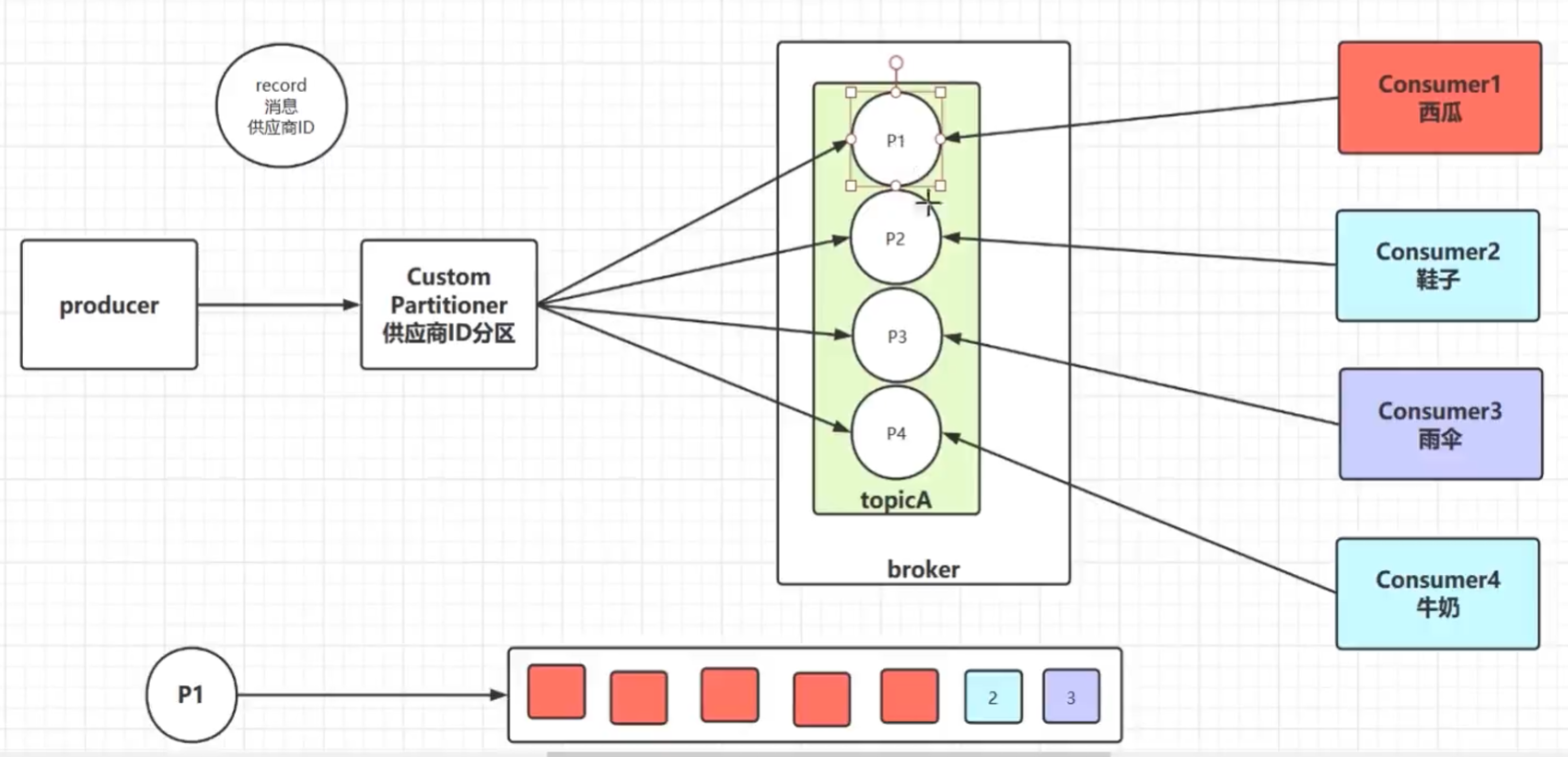 假设现在我们的kafka broker的topicA存在4个partition,此时还存在4个consumer(代表4个供应商)对应从4个partition中消费消息,因为我们的partition和队列一样,先进先出是实现顺序消息的。我们的消息是包含供应商ID的,然后通过自定义分区器Custom Partitioner根据供应商ID作partition的选择,相同的供应商ID会流入同一个partition,可以保证不同供应商ID的消息会相互不冲突,这样每个供应商都能及时的拿到具体的订单,第一时间消费消息。