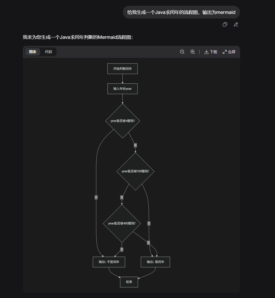 这里以DeepSeek为例,使用AI工具生成mermaid图。