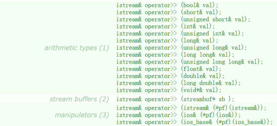 istream& operator>> (int& val);