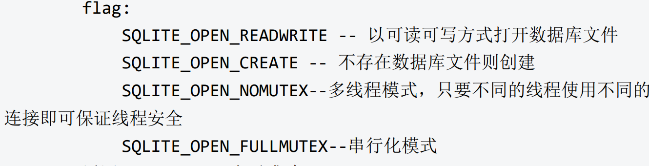 - SQLITE_OPEN_CREATE -- 不存在数据库文件则创建