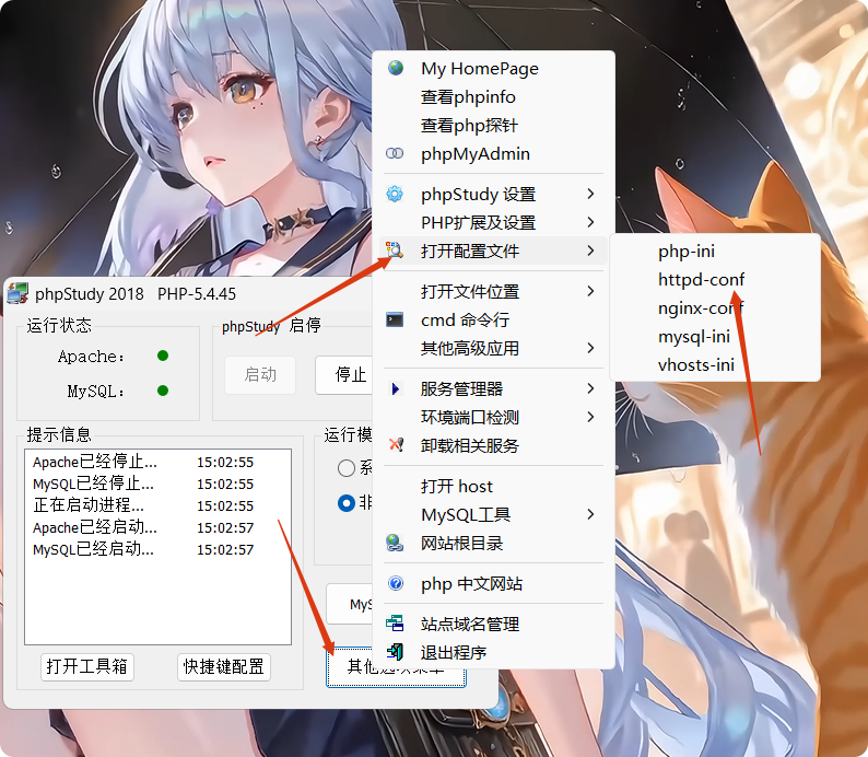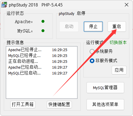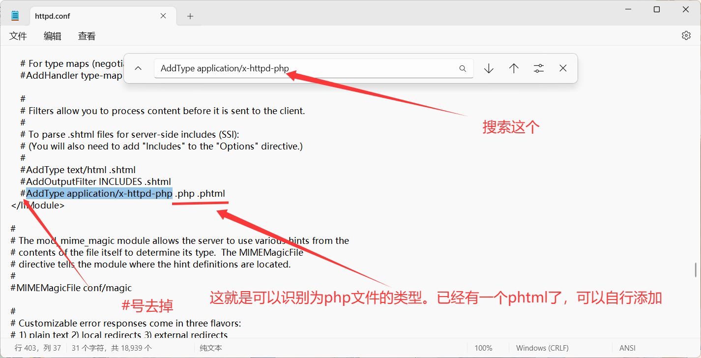 #去掉之后保存退出,然后重启php服务器,如果不重启会导致修改不生效,依旧无法将phtml文件识别成php文件