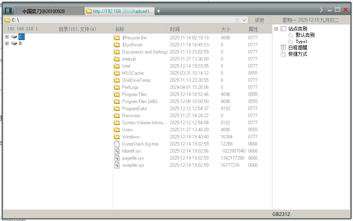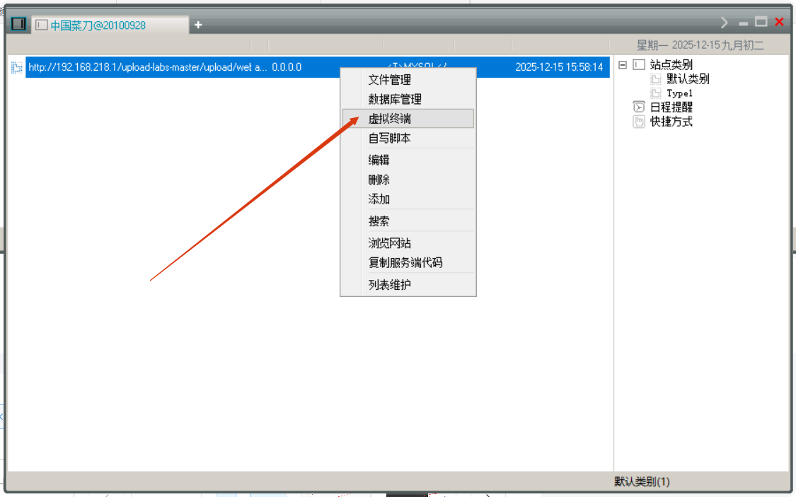 打开中国菜刀,或者蚁剑等连接工具,我这里以中国菜刀为列,右键点击添加