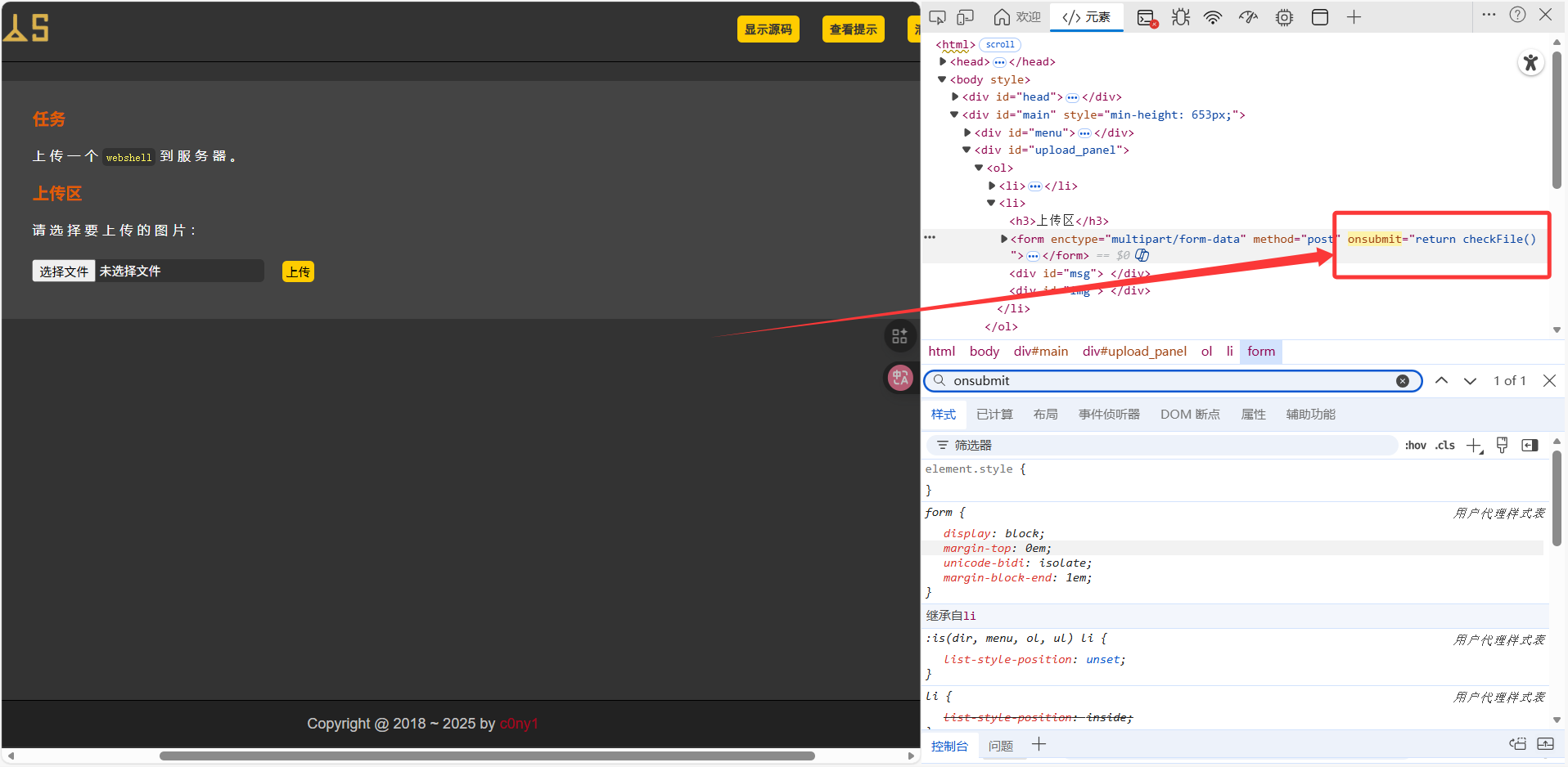 直接上传恶意文件,用 BurpSuite 拦截修改后缀(适用于仅前端验证场景)