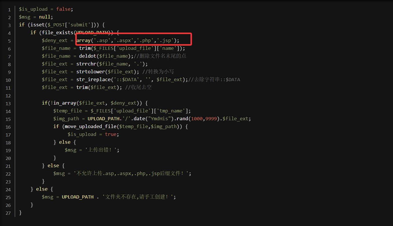 黑名单限制禁止上传的后缀(如.php/.asp),但存在遗漏或可利用的解析特性。