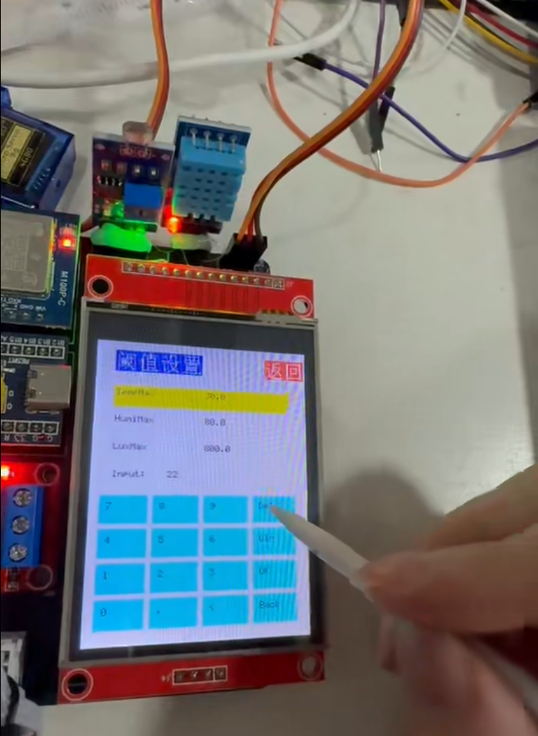 显示模块(触摸屏):作为人机界面,显示实时环境数据、设备状态,支持参数阈值设置和历史数据查询。