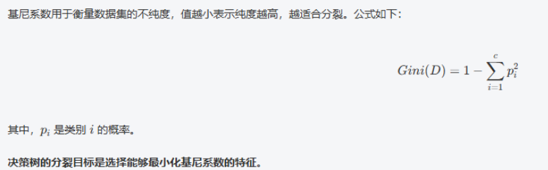 决策树的目标是通过分裂数据来尽可能纯净地划分不同的类别。