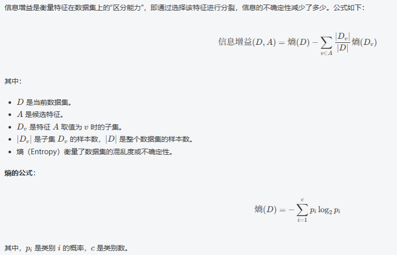 计算信息增益: 信息增益是原始数据集的熵减去条件熵。选择信息增益最大的特征进行划分。