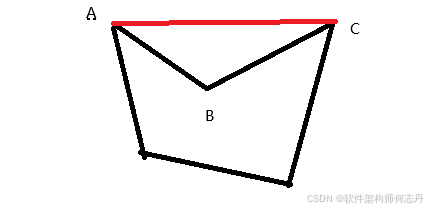 连通内角和超过 18 0 ∘ 180^\circ 180∘的顶点B,B的相邻顶点AC。除AC外,线段上的其它点多在多边形外。