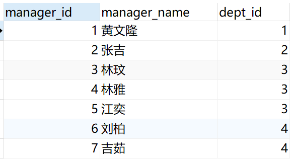select manager_id from manager where dept_id=3; # 结果为 3 4 5