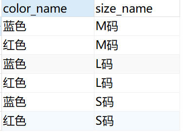 -- select 表1.字段, 表2.字段 from 表1 cross join 表2;