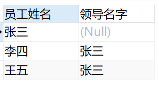 表的连接顺序是:员工表在左,部门表在右;返回员工表的所有行,部门表中无法匹配的数据则显示Null。