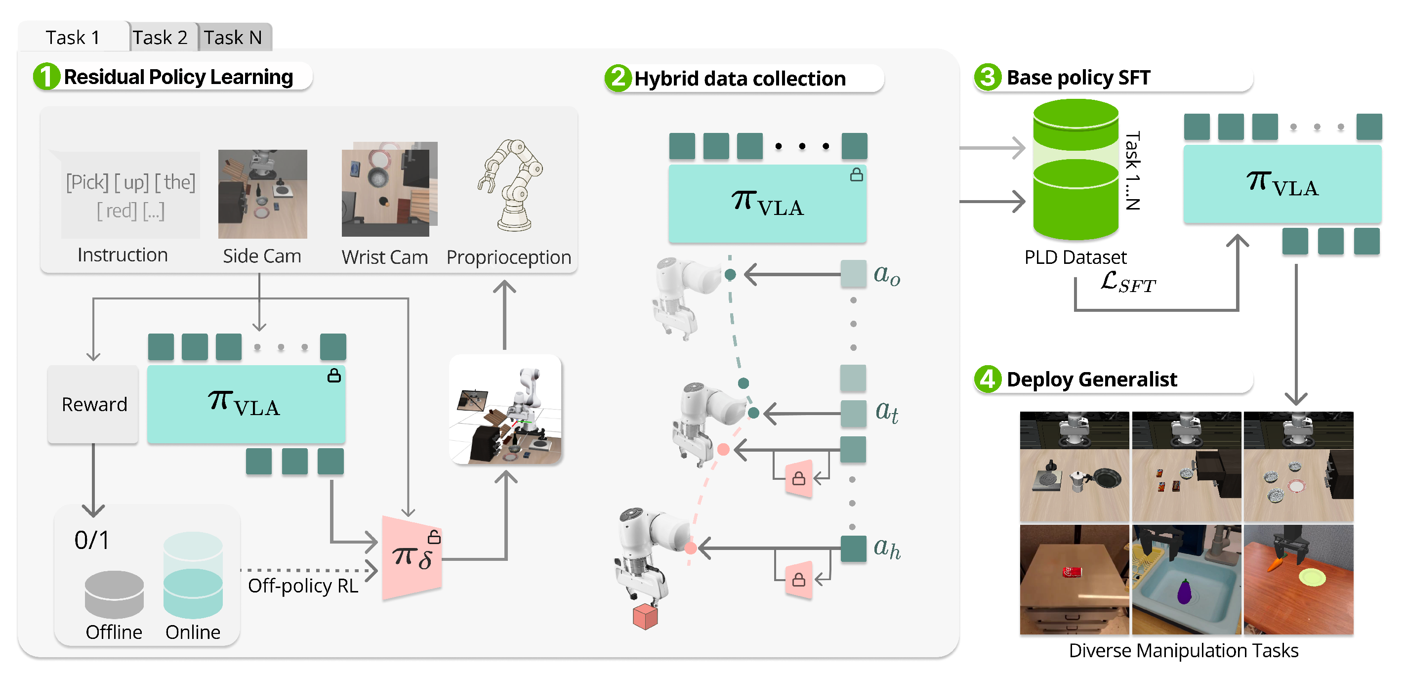 最近翻阅了50篇vla+RL的工作,很多我博客内已经解读过,很多 我暂时还无意解读,除了本文要介绍的PLD 除外