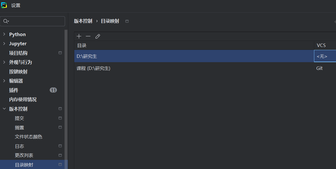 然后通过设置->版本控制->目录映射中,将VCS改为无。