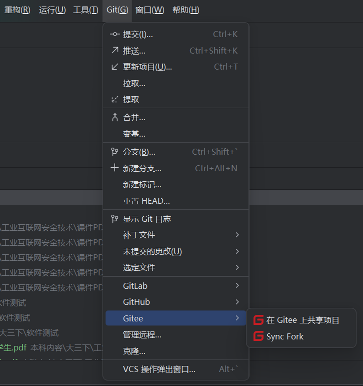 之后右击就有gitee。上传过程:首先将要提交的文件添加到git版本管理中,如下图。