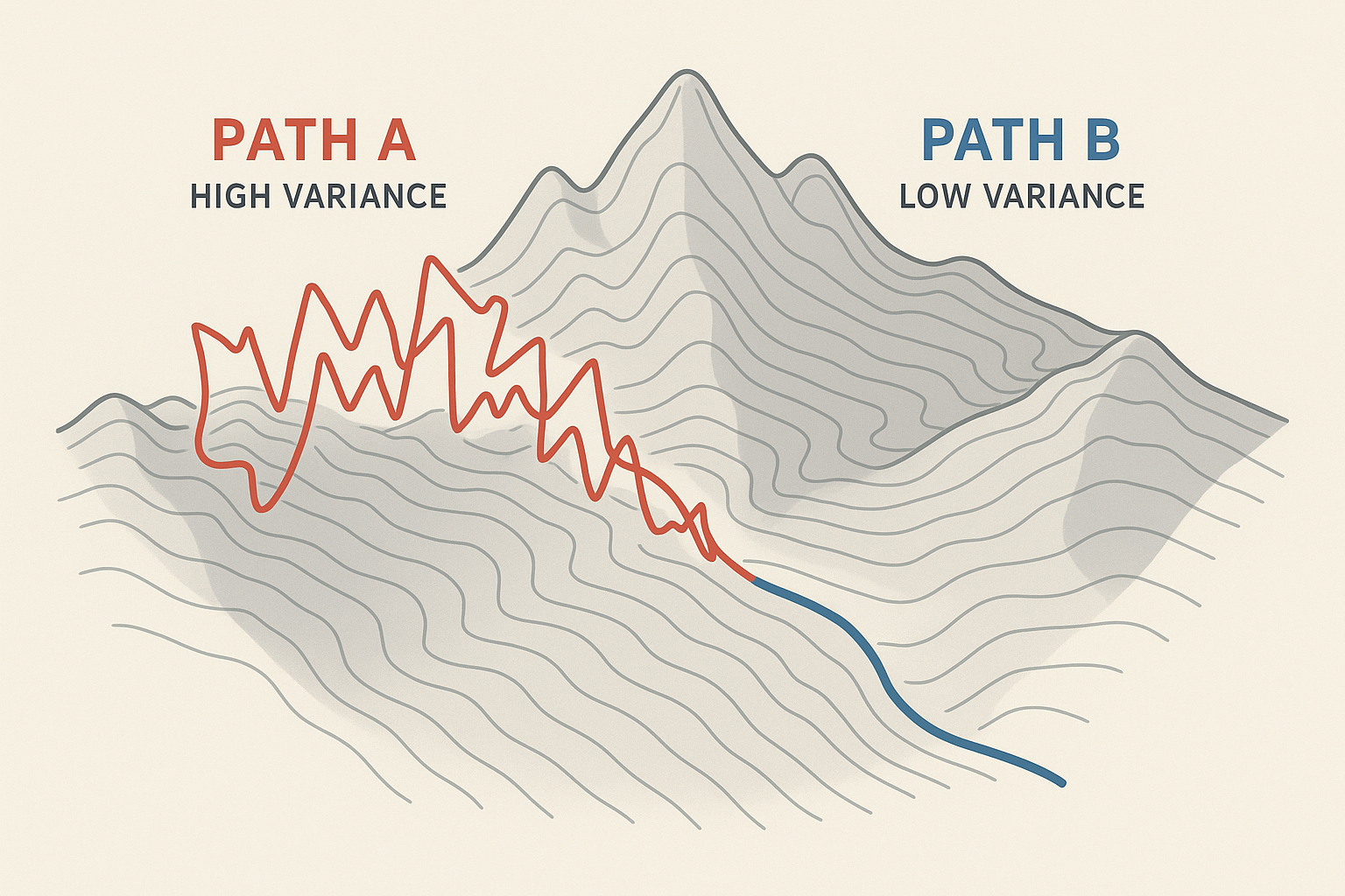 明明中间 99% 的动作都是一样的,却因为最后的结果不同,导致梯度方向截然相反。这就是高方差。梯度的方向像醉汉一样摇摆不定,导致训练过程极度震荡,收敛极慢。