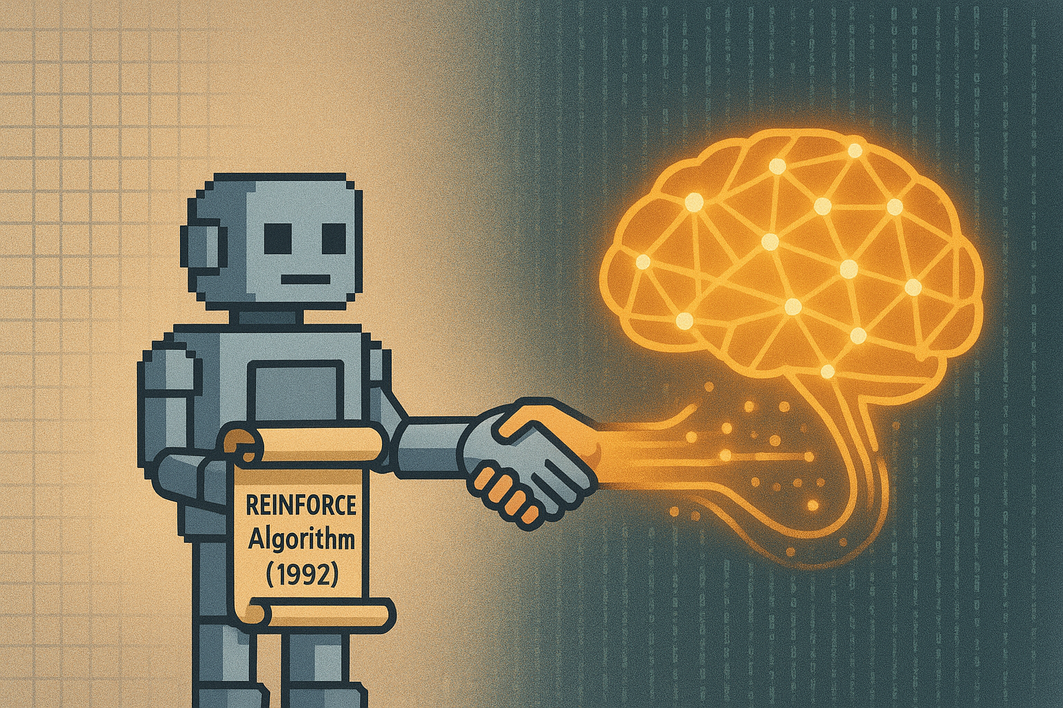 当你听到研究人员讨论"针对大模型的直接偏好优化(DPO)"或者"自我博弈(Self-Play)"时,请记住,这些高大上算法的血管里,流淌着 REINFORCE 在 30 年前留下的血液。