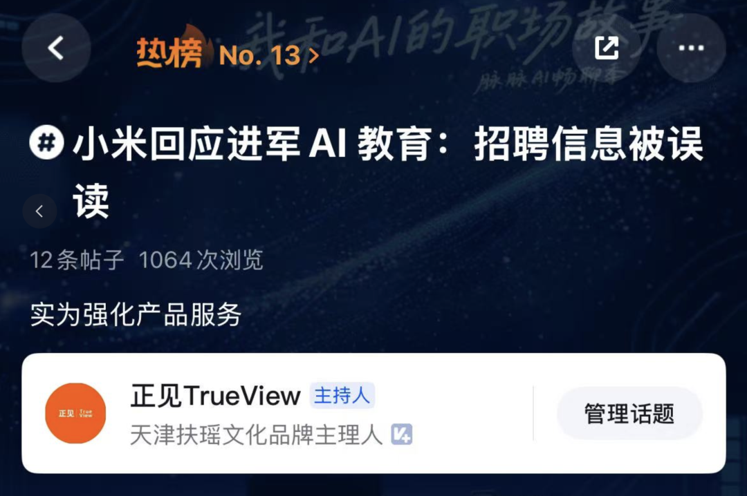 小米回应"进军AI教育":人才招聘被误读