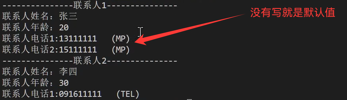 cout << " 联系人电话" << j+1 << ": " << phone.number();