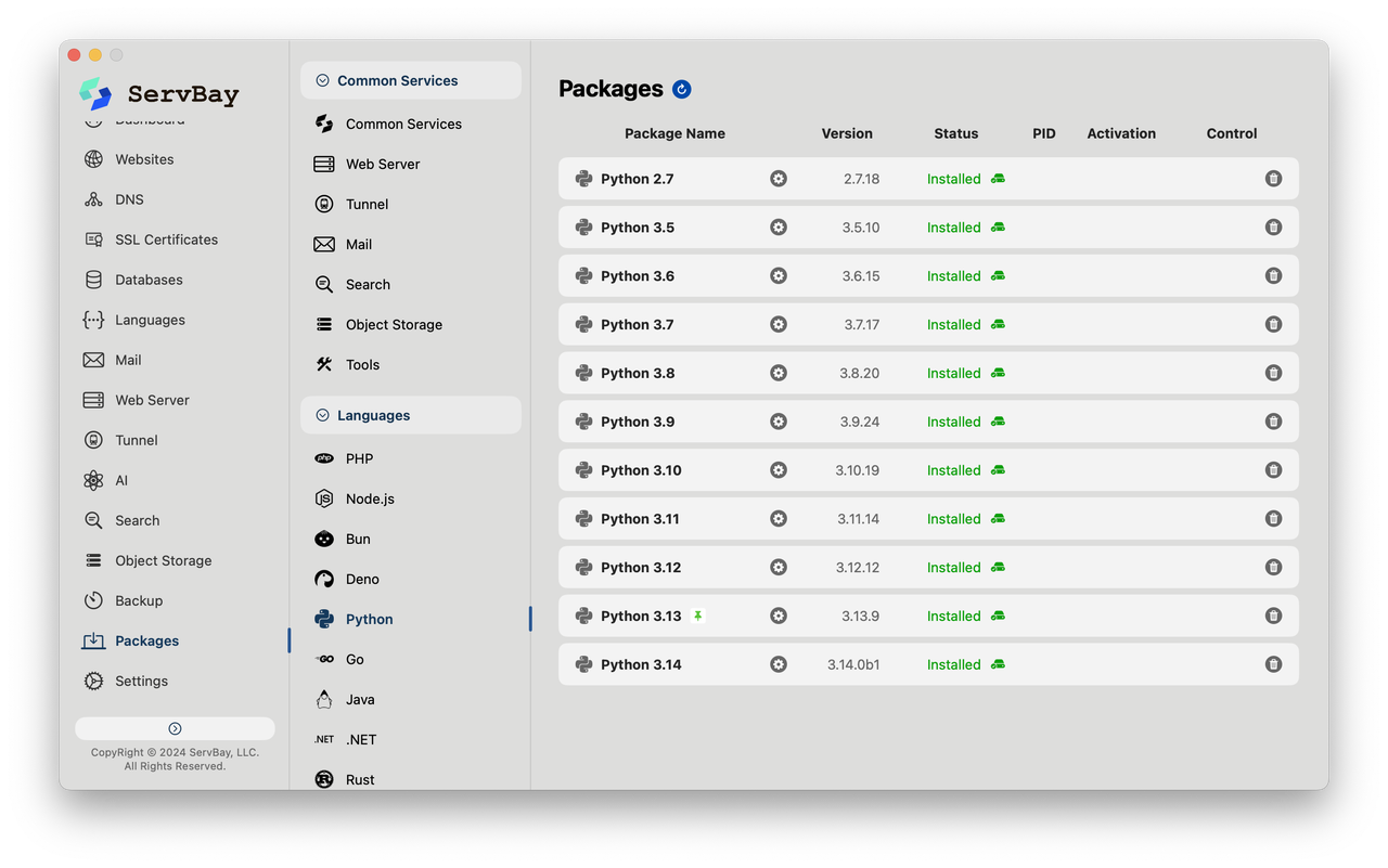 那就不得不介绍ServBay了,这是一款专为开发者设计的环境管理工具。