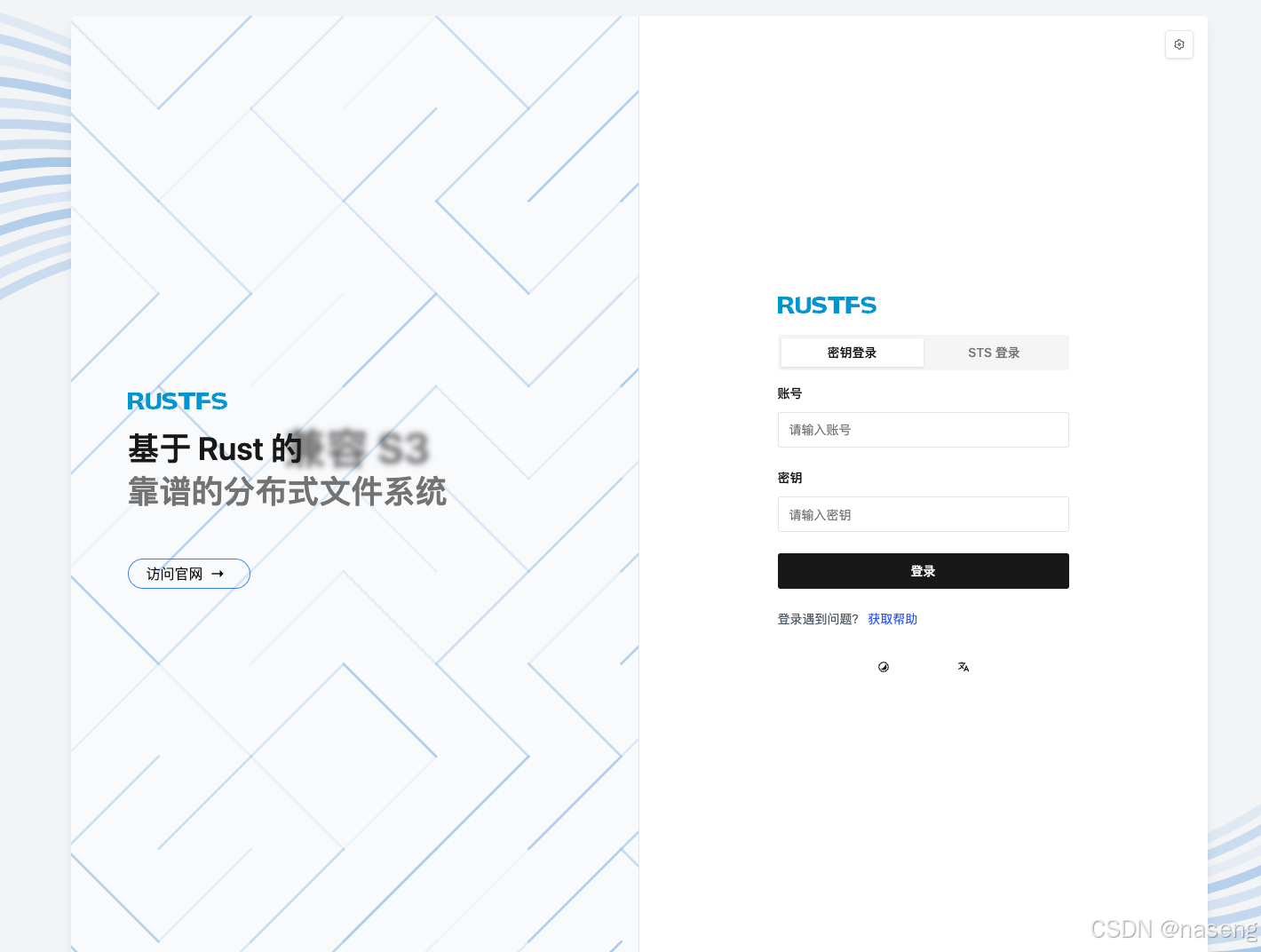 后台启动地址 http://127.0.0.1:9001/rustfs/console/auth/login
