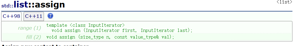 assign函数用于将新内容分配给容器,替换其当前内容,新内容的赋予方式有两种: