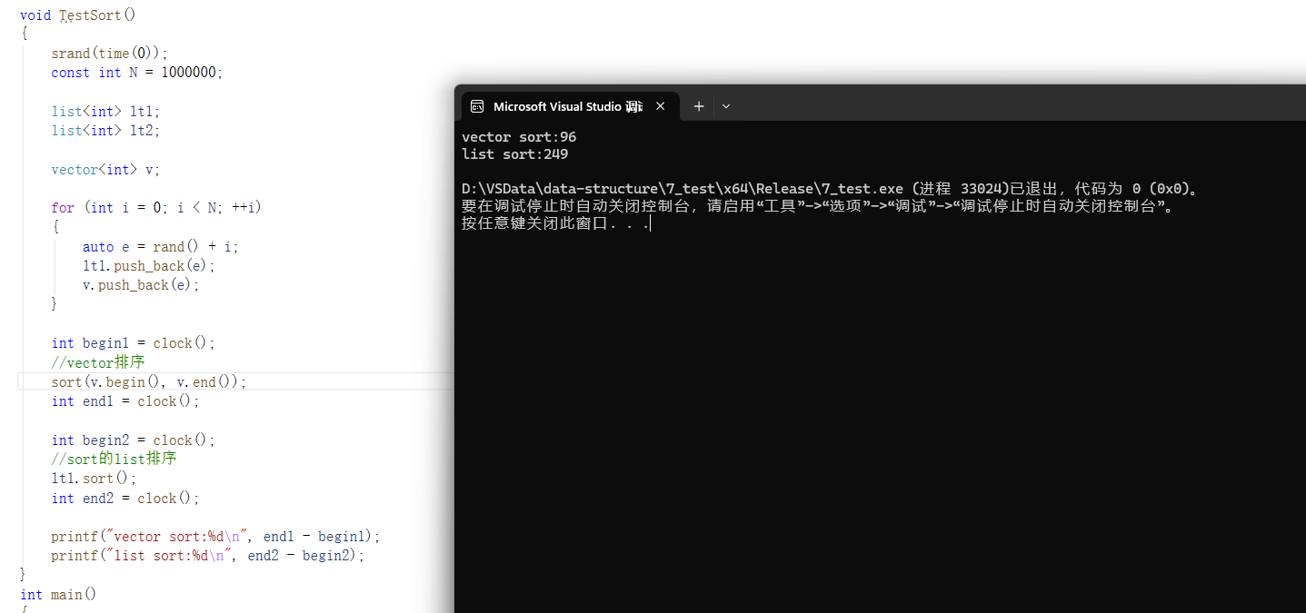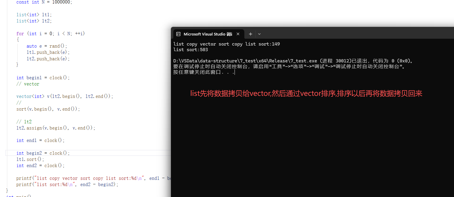 printf("list copy vector sort copy list sort:%d\n", end1 - begin1);