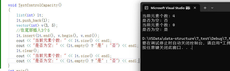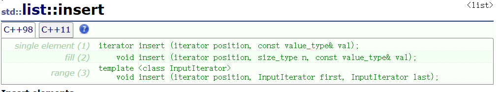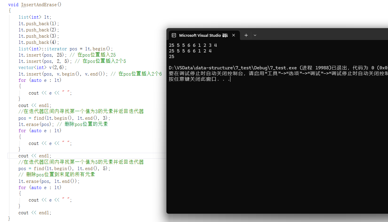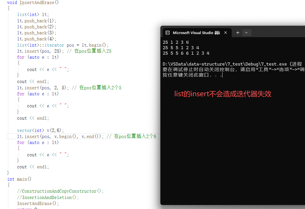 lt.insert(pos, v.begin(), v.end()); // 在pos位置插入2个6