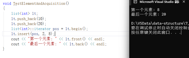 cout << "最后一个元素: " << lt.back() << endl;